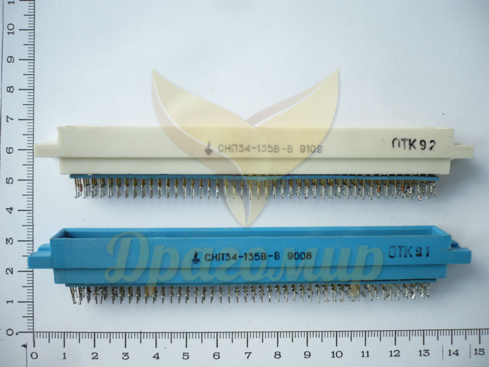 Разъем СНП 34-135 состоит из впаиваемой в плату розетки и ответной вилки, подпаиваемой к жгуту проводов. Относится к серии СНП – Соединитель Ножевой прямоугольный Печатного монтажа. В полимерном корпусе в три ряда расположены 135 контактов, имеющих золотое покрытие, поэтому разъем отличается высокой стоимостью.